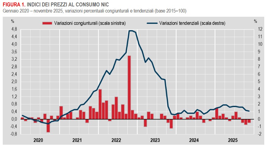 Istat: Inflazione - in Italia +1,1% nel mese di novembre 2025 (definitivo)